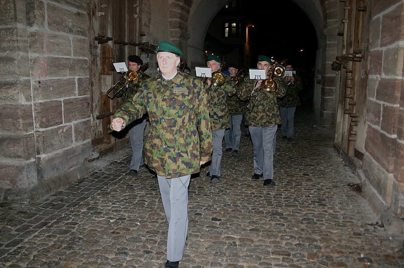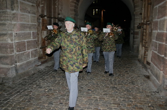 Militärspiel Basel unter der Leitung von Christoph Seibert und dem Torbogen des St. Johanns-Tors