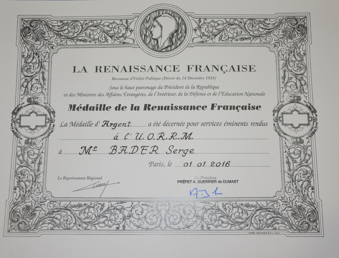 Bader die "Médaille de la Renaissance Française, La