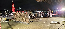 traditionellen 23 Schuss Salut am Rheinufer der Schiffsanlegestelle St. Johann.